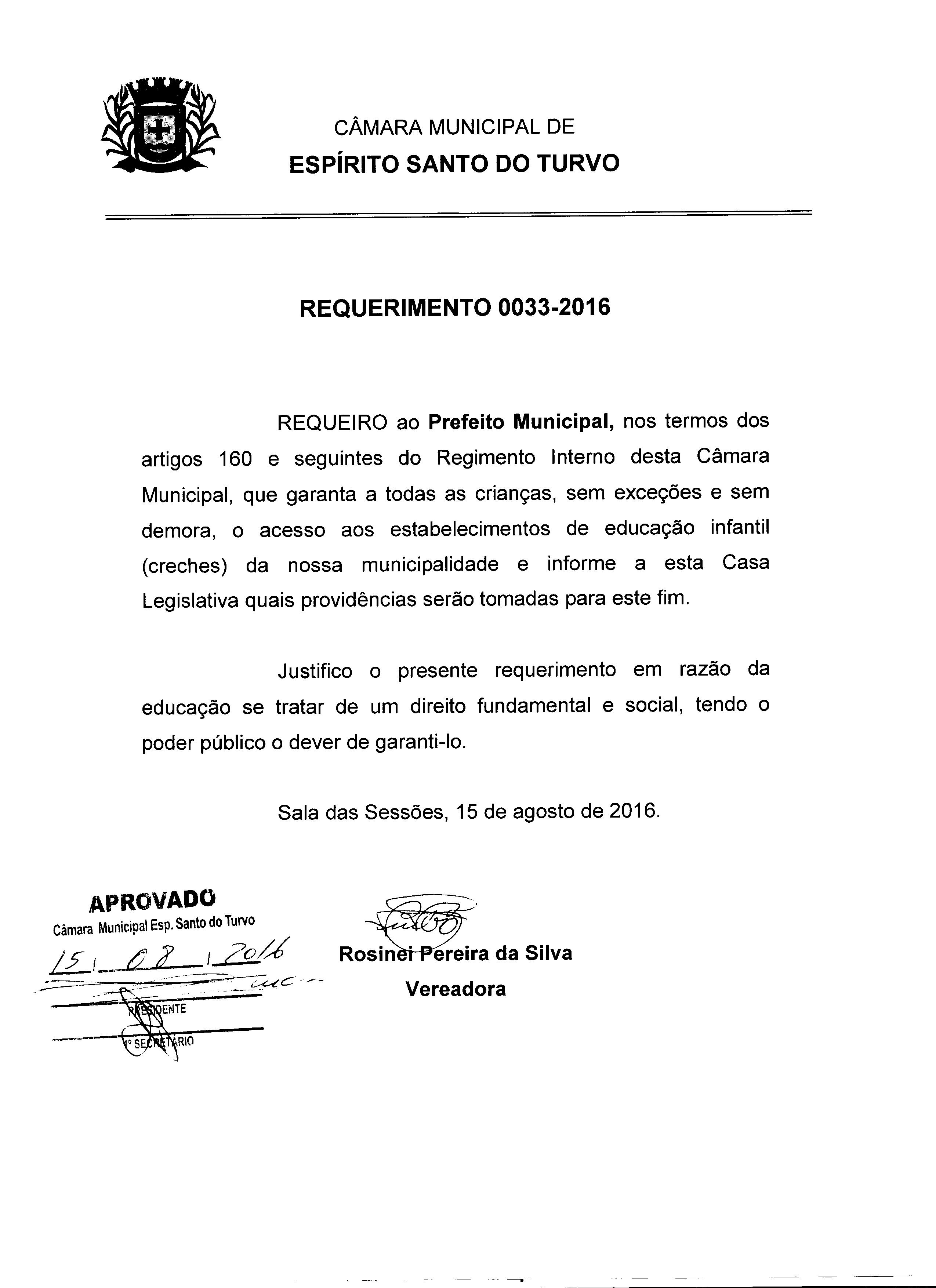 REQ 33/2016 - Requerimento